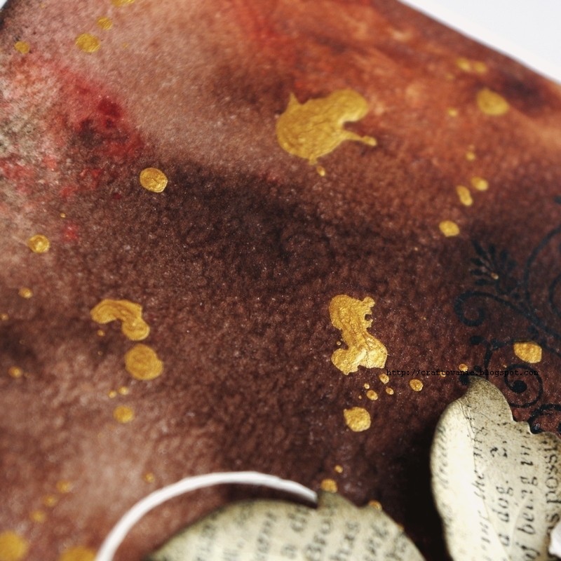 Nie wiem czy na zdjęciach ta karteczka nie prezentuje się ciut ponuro, ale w rzeczywistości bardzo ładnie się mieni dzięki perłowym mgiełkom 13@rts. No i dodatkowo te złote kleksiki.... Jak zwykle nie wiedziałam gdzie wcisnąć jakiś napis okolicznościowy....